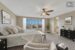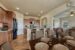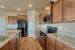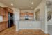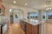 - Kitchen features granite counters, stainless steel sink, island with bartop, and pantry